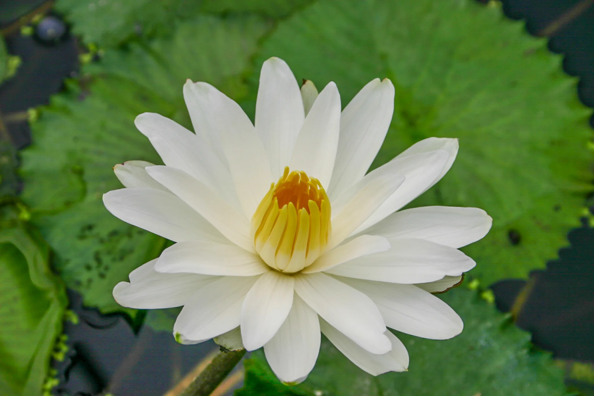 Nymphaea 'Trudy Slocum' is an excellent night blooming tropical waterlily with white blossoms. The flowers open in the early evening and stay open till 8-9 in the morning. Night blooming lilies are an excellent choice for those who have to work all day. This is a great addition for a medium to large water garden or pond.